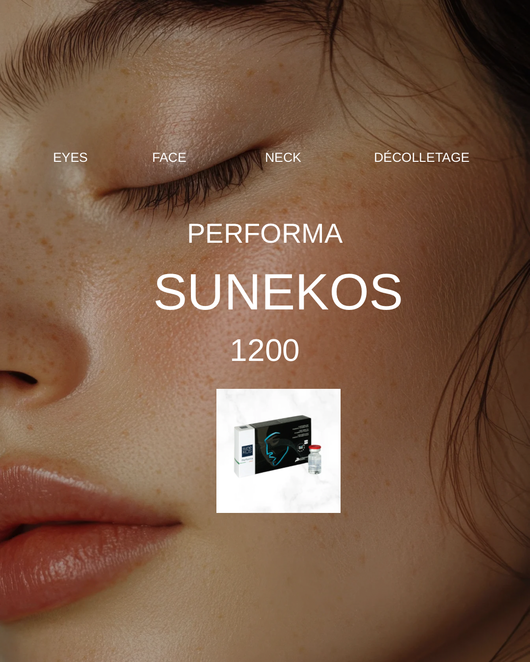 SUNEKOS 1200 och SUNEKOS Performa är avancerade regenerativa injektionsbehandlingar som förbättrar hudens kvalitet på djupet genom att stimulera hudens egen produktion av kollagen och elastin. Till skillnad från traditionella fillers arbetar Sunekos med hudens naturliga processer och ger ett fräscht, ungdomligt resultat utan att förändra ansiktsdragen.